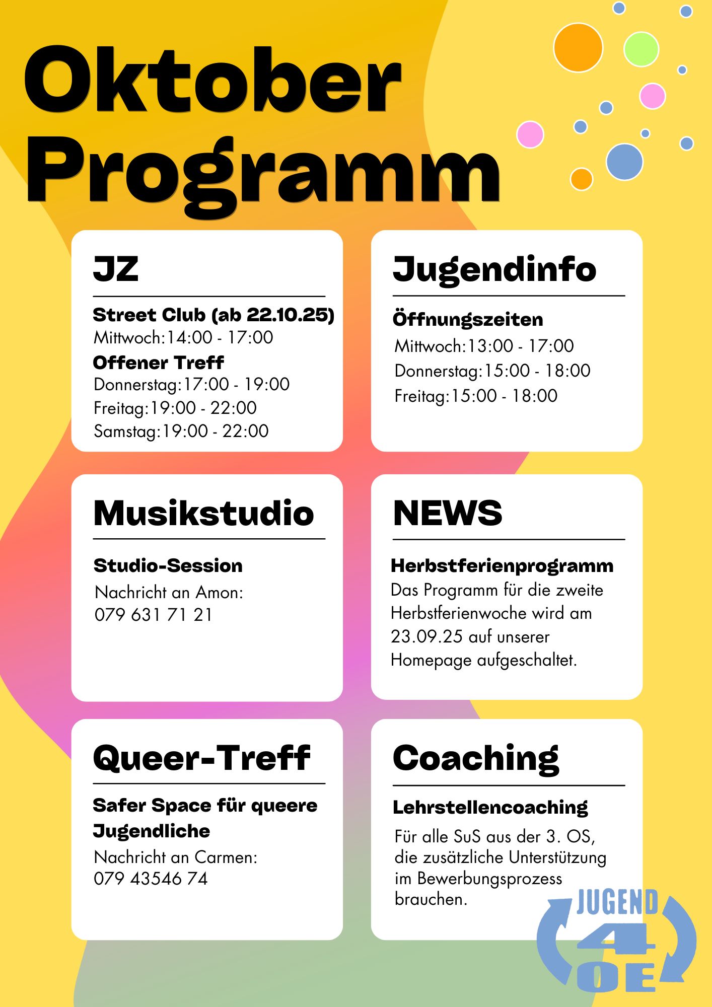 -> Während den Ferien sowie an Feiertagen bleibt die Jugendinfo geschlossen - Termine können individuell vereinbart werden